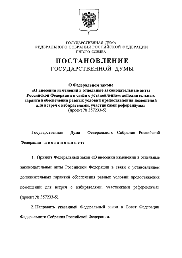 ЗАКОНОДАТЕЛЬНЫЕ АКТЫ РОССИЙСКОЙ ФЕДЕРАЦИИ В СВЯЗИ С УСТАНОВЛЕНИЕМ