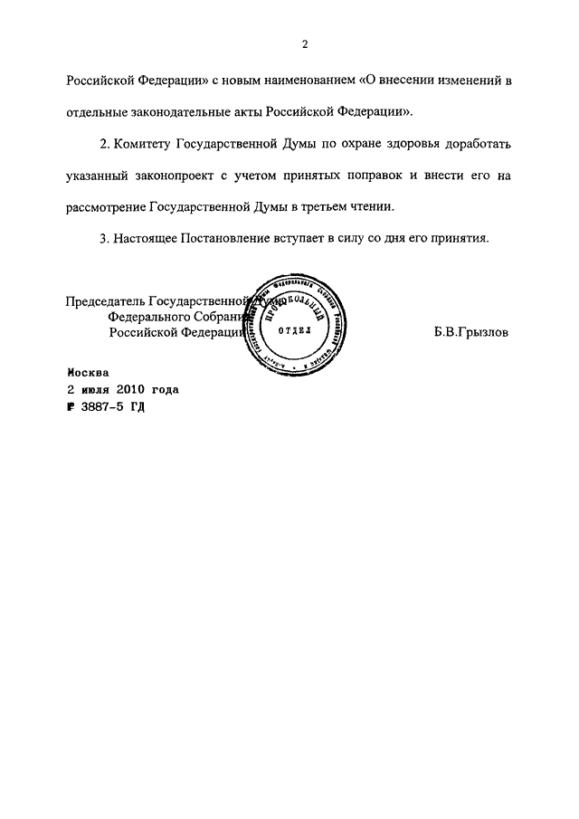 ПОСТАНОВЛЕНИЕ ГД ФС РФ от 02.07.2010 N 3887-5 ГД