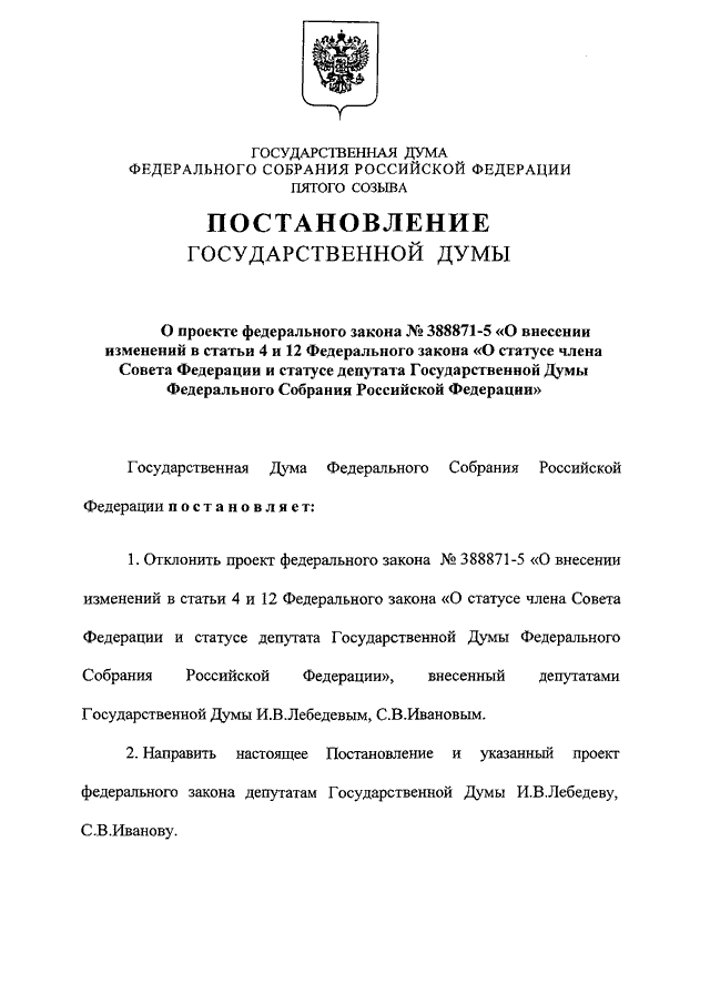 ФЕДЕРАЦИИ И СТАТУСЕ ДЕПУТАТА ГОСУДАРСТВЕННОЙ ДУМЫ ФЕДЕРАЛЬНОГО