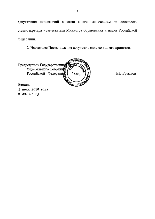 ПОСТАНОВЛЕНИЕ ГД ФС РФ от 02.07.2010 N 3873-5 ГД
