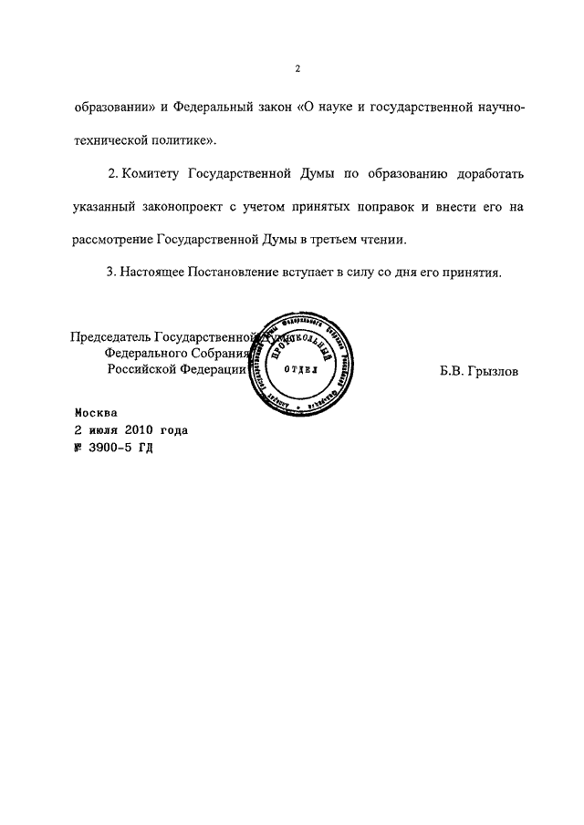 ПОСТАНОВЛЕНИЕ ГД ФС РФ от 02.07.2010 N 3900-5 ГД