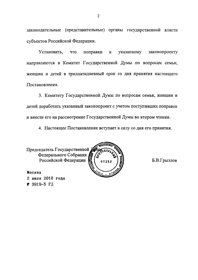 ПОСТАНОВЛЕНИЕ ГД ФС РФ от 02.07.2010 N 3919-5 ГД