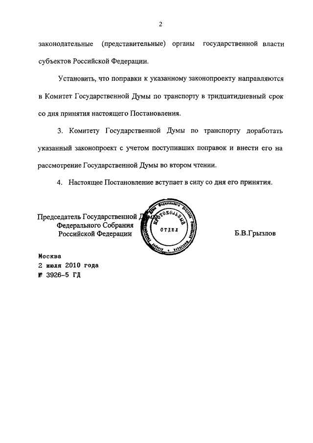ПОСТАНОВЛЕНИЕ ГД ФС РФ от 02.07.2010 N 3926-5 ГД