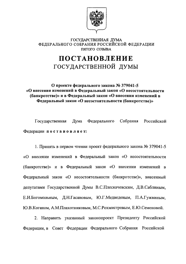 "О ПРОЕКТЕ ФЕДЕРАЛЬНОГО ЗАКОНА N 379041-5 "О ВНЕСЕНИИ ИЗМЕНЕНИЙ В