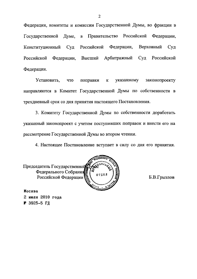 ПОСТАНОВЛЕНИЕ ГД ФС РФ от 02.07.2010 N 3925-5 ГД