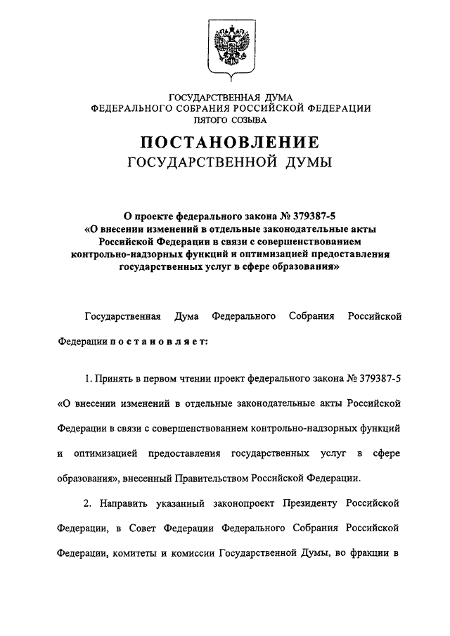 "О ПРОЕКТЕ ФЕДЕРАЛЬНОГО ЗАКОНА N 379387-5 "О ВНЕСЕНИИ ИЗМЕНЕНИЙ В