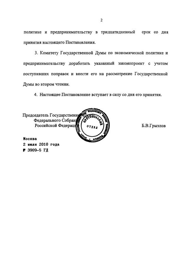 ПОСТАНОВЛЕНИЕ ГД ФС РФ от 02.07.2010 N 3909-5 ГД