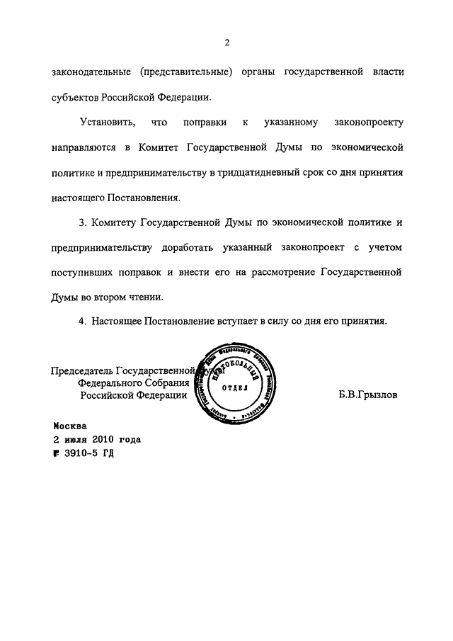 ПОСТАНОВЛЕНИЕ ГД ФС РФ от 02.07.2010 N 3910-5 ГД