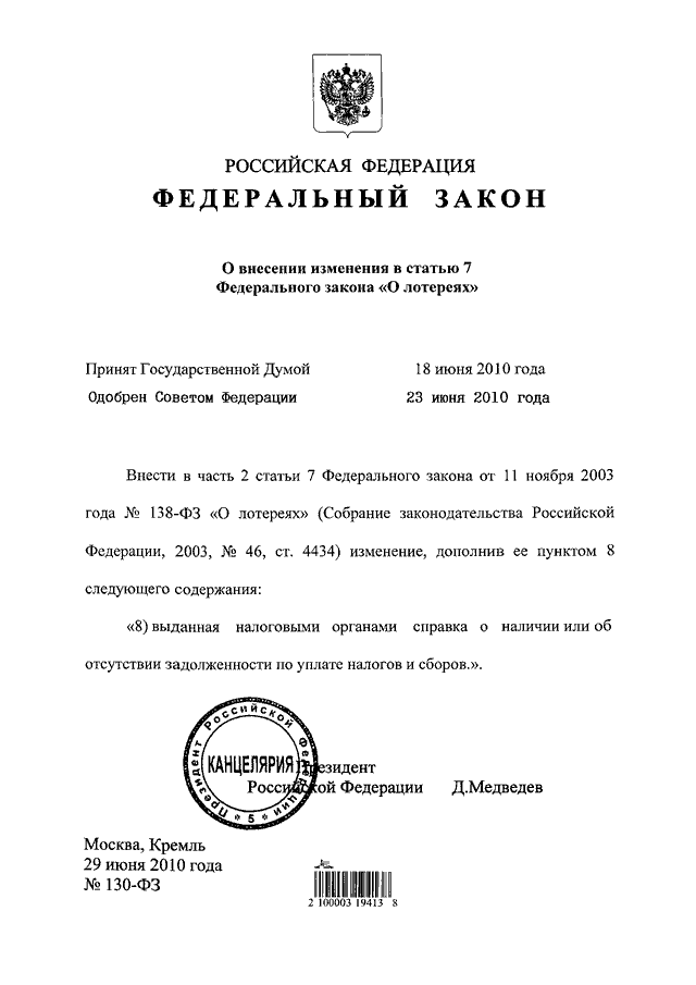 ФЕДЕРАЛЬНЫЙ ЗАКОН от 29.06.2010 N 130-ФЗ