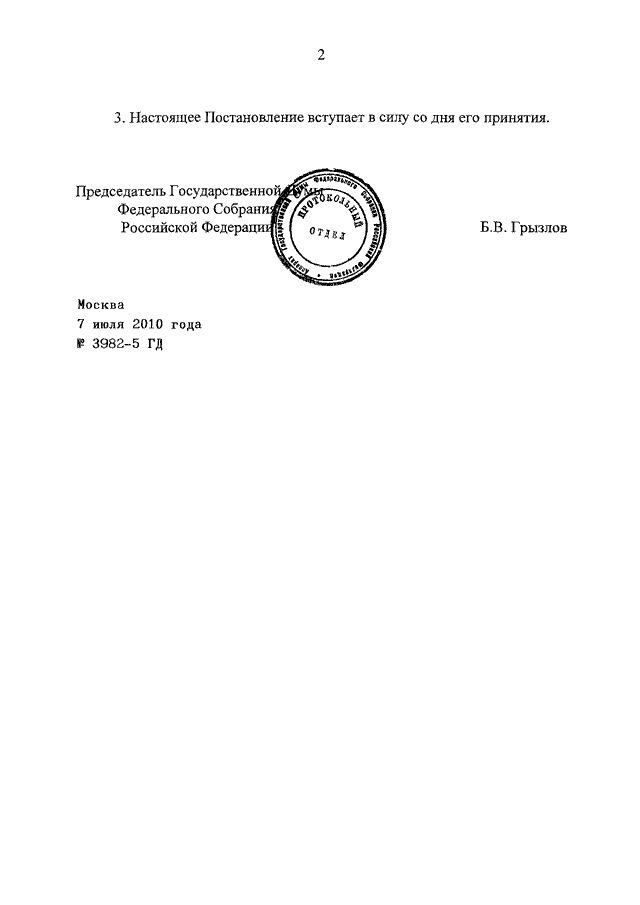 ПОСТАНОВЛЕНИЕ ГД ФС РФ от 07.07.2010 N 3982-5 ГД
