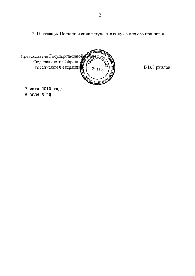 ПОСТАНОВЛЕНИЕ ГД ФС РФ от 07.07.2010 N 3984-5 ГД