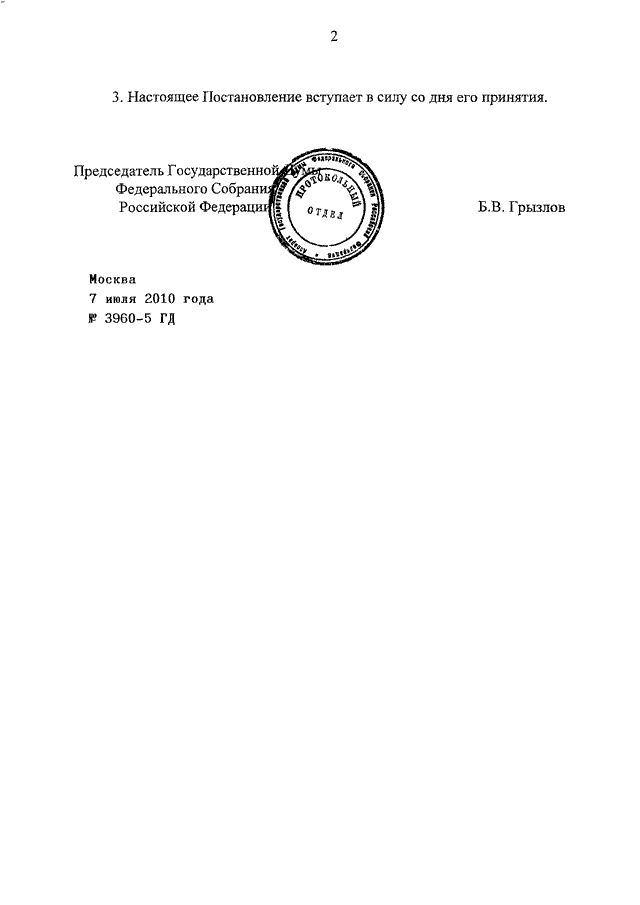 ПОСТАНОВЛЕНИЕ ГД ФС РФ от 07.07.2010 N 3960-5 ГД
