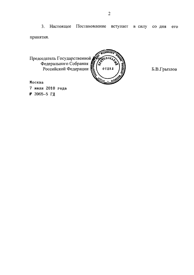ПОСТАНОВЛЕНИЕ ГД ФС РФ от 07.07.2010 N 3965-5 ГД