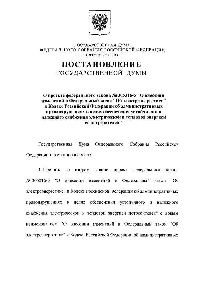 "О ПРОЕКТЕ ФЕДЕРАЛЬНОГО ЗАКОНА N 305316-5 "О ВНЕСЕНИИ ИЗМЕНЕНИЙ В