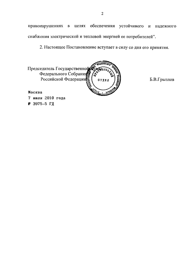 ПОСТАНОВЛЕНИЕ ГД ФС РФ от 07.07.2010 N 3975-5 ГД