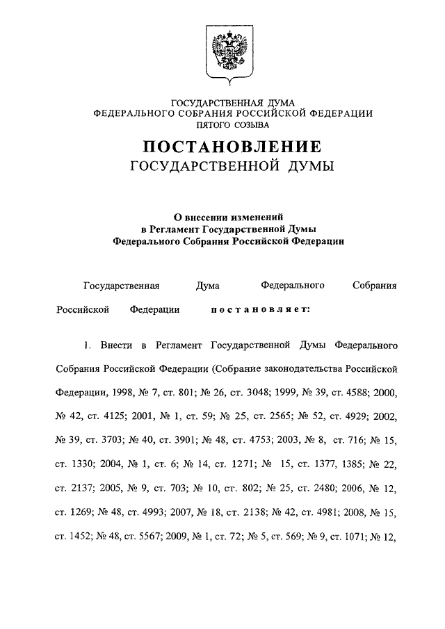 "О ВНЕСЕНИИ ИЗМЕНЕНИЙ В РЕГЛАМЕНТ ГОСУДАРСТВЕННОЙ ДУМЫ ФЕДЕРАЛЬНОГО СОБРАНИЯ РОССИЙСКОЙ ФЕДЕРАЦИИ"