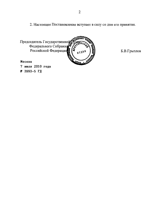ПОСТАНОВЛЕНИЕ ГД ФС РФ от 07.07.2010 N 3993-5 ГД