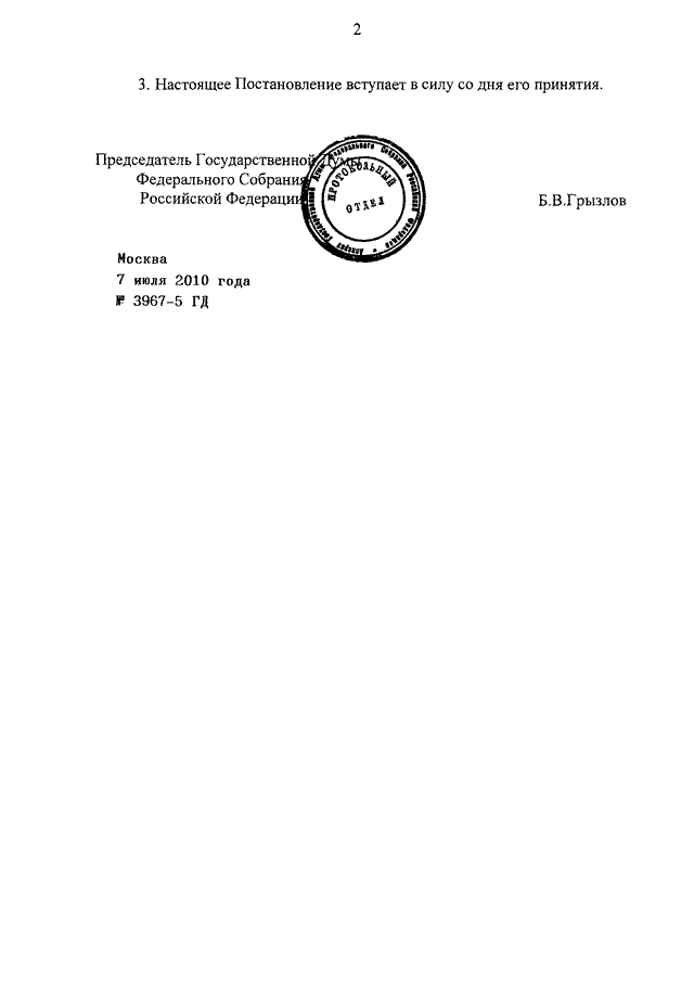 ПОСТАНОВЛЕНИЕ ГД ФС РФ от 07.07.2010 N 3967-5 ГД