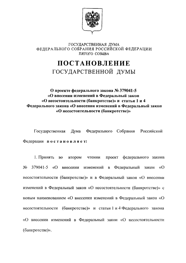"О ПРОЕКТЕ ФЕДЕРАЛЬНОГО ЗАКОНА N 379041-5 "О ВНЕСЕНИИ ИЗМЕНЕНИЙ В