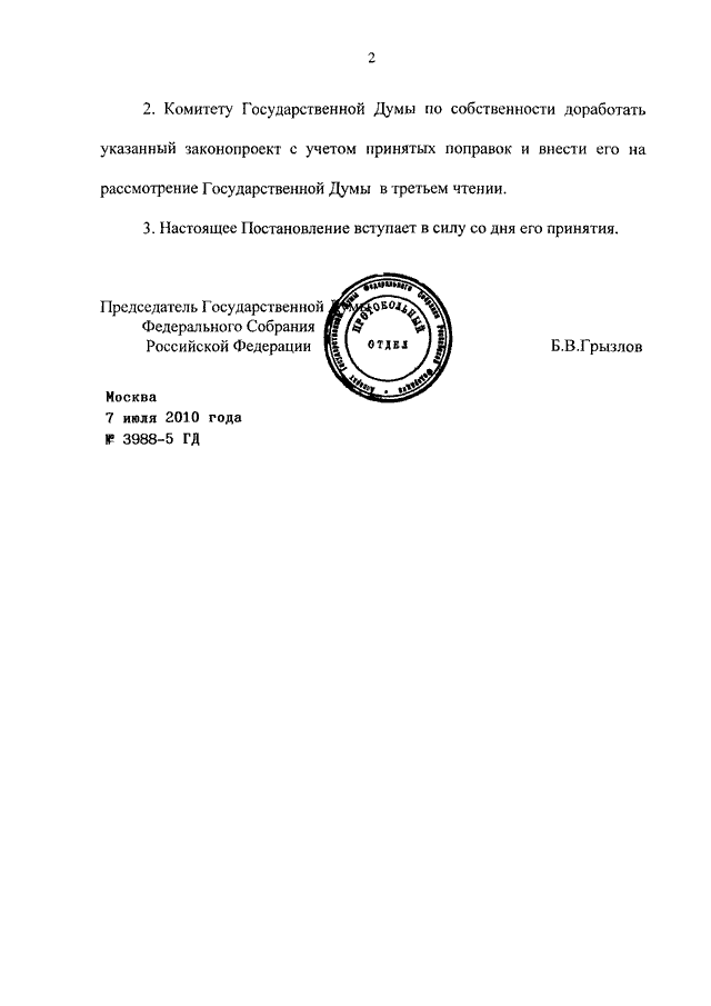 ПОСТАНОВЛЕНИЕ ГД ФС РФ от 07.07.2010 N 3988-5 ГД
