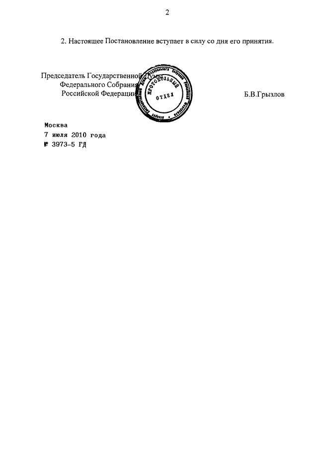 ПОСТАНОВЛЕНИЕ ГД ФС РФ от 07.07.2010 N 3973-5 ГД