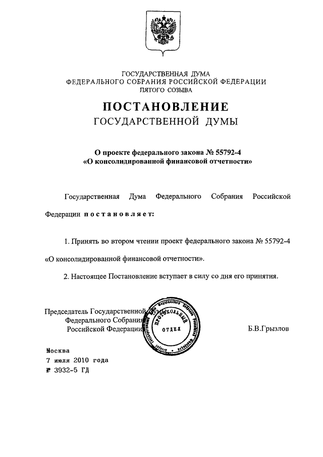 ПОСТАНОВЛЕНИЕ ГД ФС РФ от 07.07.2010 N 3932-5 ГД