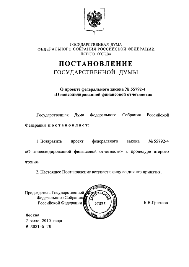 ПОСТАНОВЛЕНИЕ ГД ФС РФ от 07.07.2010 N 3931-5 ГД