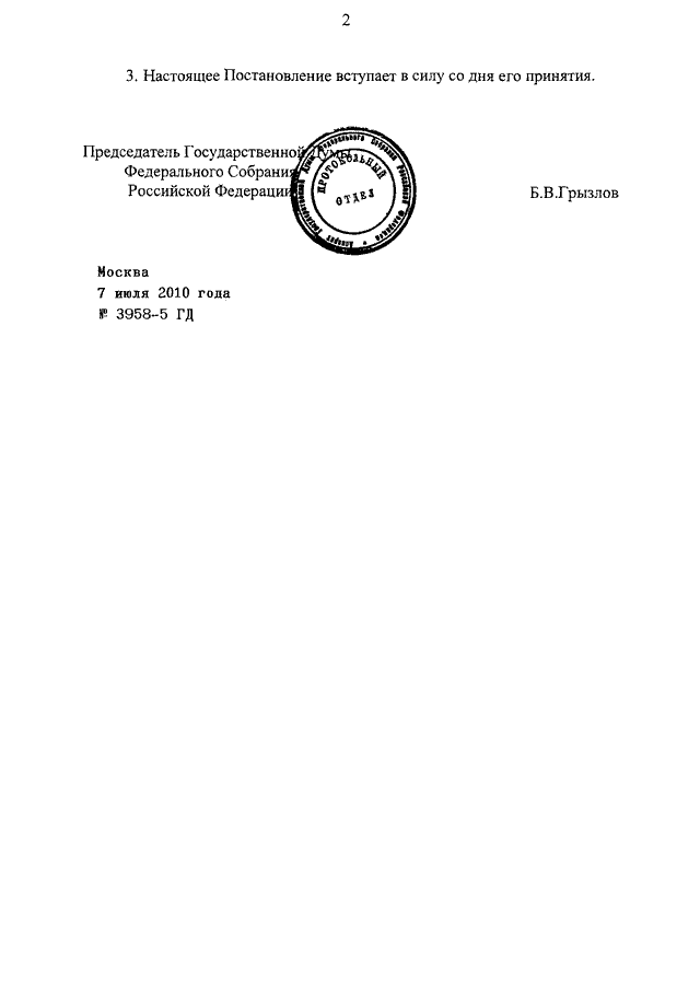 ПОСТАНОВЛЕНИЕ ГД ФС РФ от 07.07.2010 N 3958-5 ГД