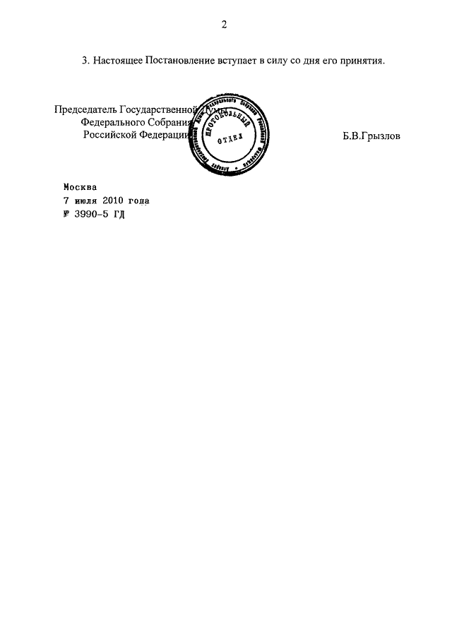 ПОСТАНОВЛЕНИЕ ГД ФС РФ от 07.07.2010 N 3990-5 ГД