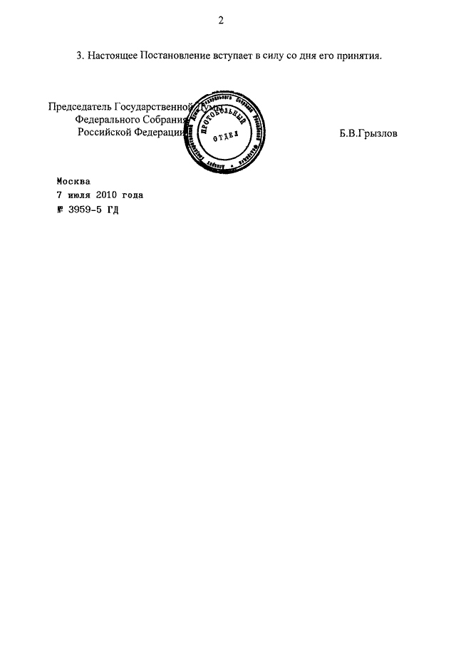 ПОСТАНОВЛЕНИЕ ГД ФС РФ от 07.07.2010 N 3959-5 ГД