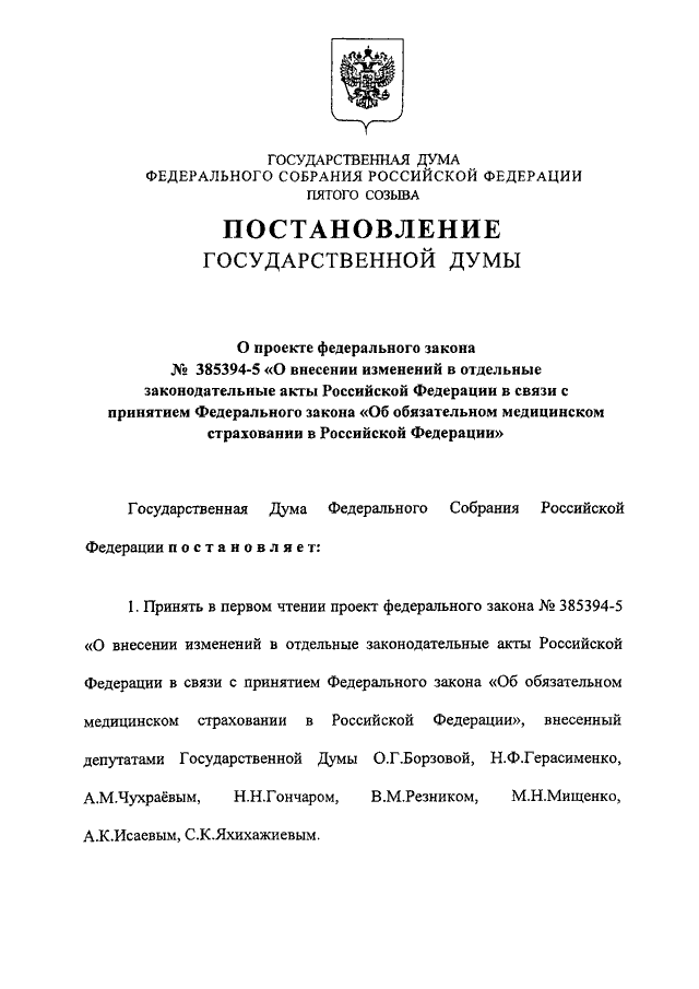 ПРИНЯТИЕМ ФЕДЕРАЛЬНОГО ЗАКОНА "ОБ ОБЯЗАТЕЛЬНОМ МЕДИЦИНСКОМ