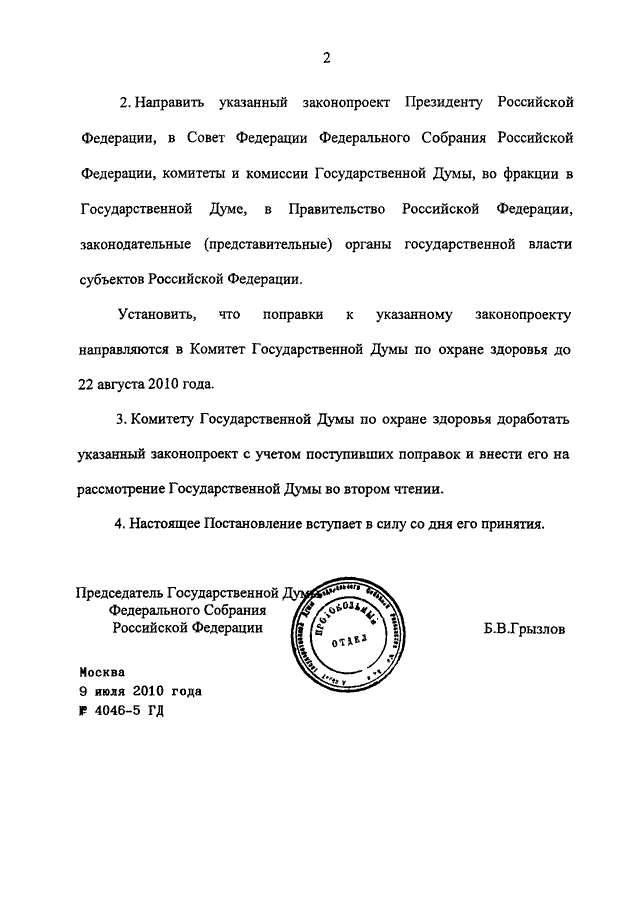 ПОСТАНОВЛЕНИЕ ГД ФС РФ от 09.07.2010 N 4046-5 ГД