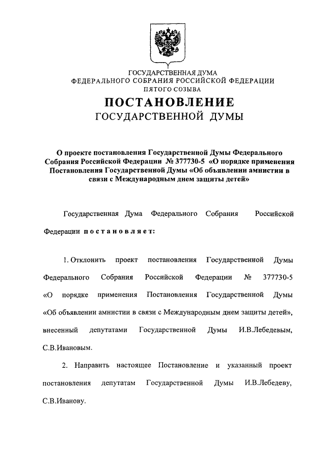 ПОСТАНОВЛЕНИЯ ГОСУДАРСТВЕННОЙ ДУМЫ "ОБ ОБЪЯВЛЕНИИ АМНИСТИИ В СВЯЗИ