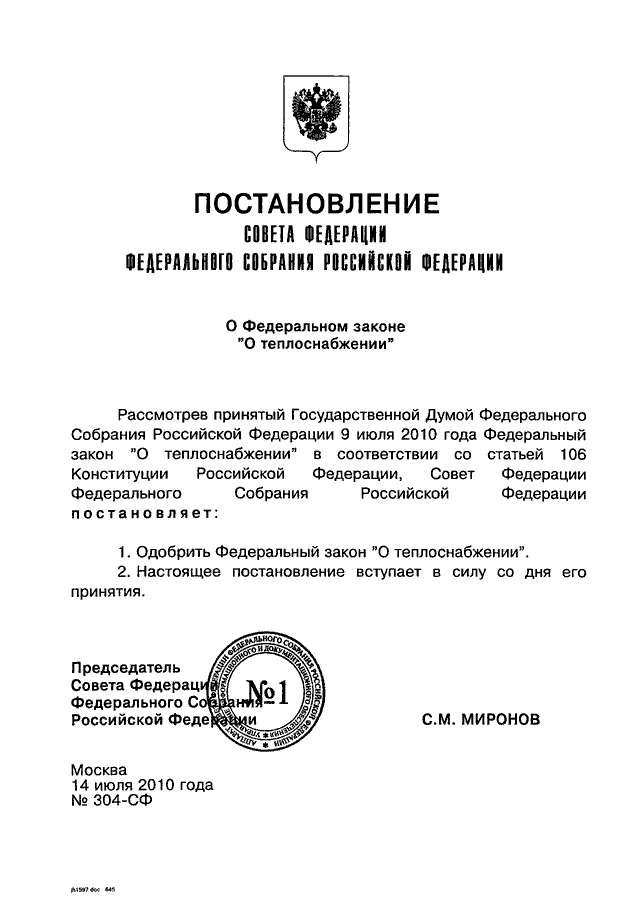 ПОСТАНОВЛЕНИЕ СФ ФС РФ от 14.07.2010 N 304-СФ