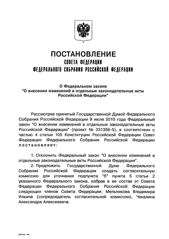 ПОСТАНОВЛЕНИЕ СФ ФС РФ от 14.07.2010 N 317-СФ