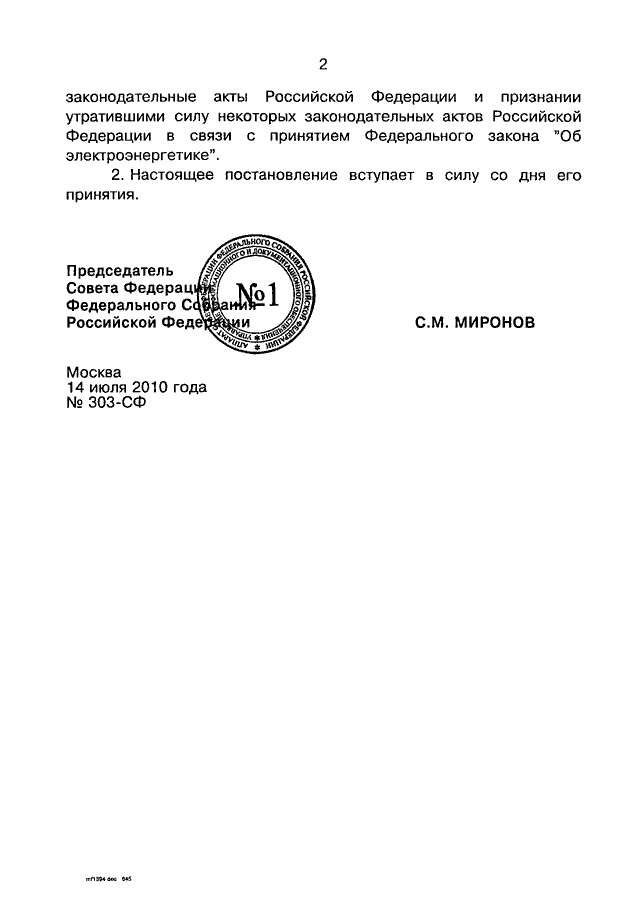 ПОСТАНОВЛЕНИЕ СФ ФС РФ от 14.07.2010 N 303-СФ