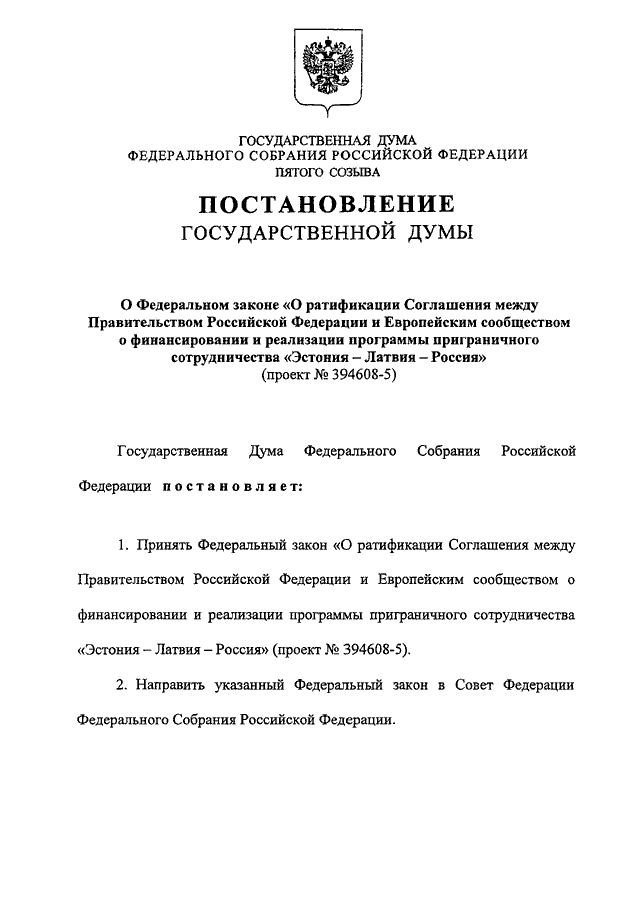 "ЭСТОНИЯ - ЛАТВИЯ - РОССИЯ" (ПРОЕКТ N 394608-5)"