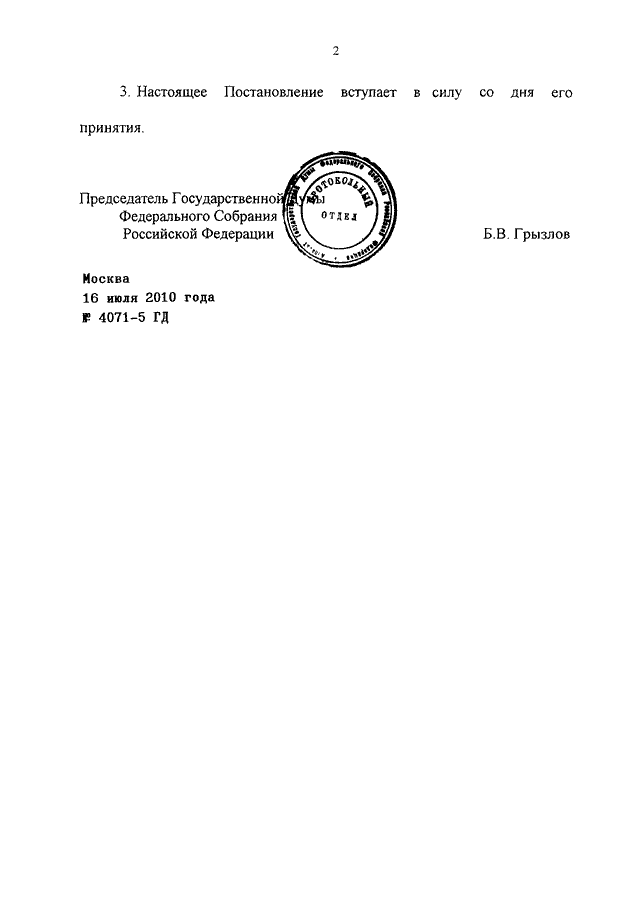 ПОСТАНОВЛЕНИЕ ГД ФС РФ от 16.07.2010 N 4071-5 ГД