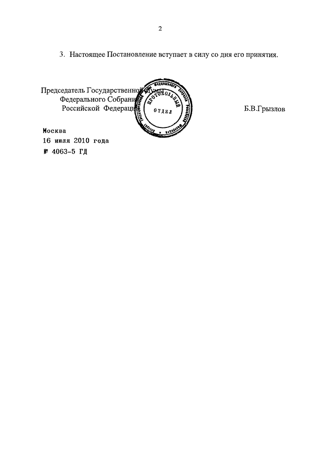 ПОСТАНОВЛЕНИЕ ГД ФС РФ от 16.07.2010 N 4063-5 ГД
