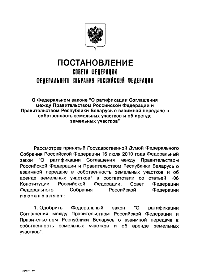 БЕЛАРУСЬ О ВЗАИМНОЙ ПЕРЕДАЧЕ В СОБСТВЕННОСТЬ ЗЕМЕЛЬНЫХ УЧАСТКОВ И