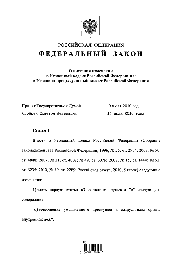 (принят ГД ФС РФ 09.07.2010)