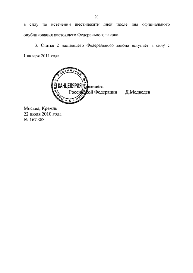 ФЕДЕРАЛЬНЫЙ ЗАКОН от 22.07.2010 N 167-ФЗ