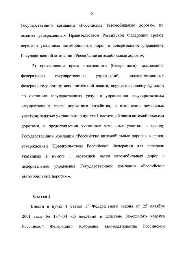 "О ВНЕСЕНИИ ИЗМЕНЕНИЙ В ФЕДЕРАЛЬНЫЙ ЗАКОН "О ГОСУДАРСТВЕННОЙ КОМПАНИИ "РОССИЙСКИЕ АВТОМОБИЛЬНЫЕ ДОРОГИ" И О ВНЕСЕНИИ ИЗМЕНЕНИЙ В ОТДЕЛЬНЫЕ ЗАКОНОДАТЕЛЬНЫЕ АКТЫ РОССИЙСКОЙ ФЕДЕРАЦИИ" И СТАТЬЮ 3.1 ФЕДЕРАЛЬНОГО ЗАКОНА "О ВВЕДЕНИИ В ДЕЙСТВИЕ ЗЕМЕЛЬНОГО КОДЕКСА РОССИЙСКОЙ ФЕДЕРАЦИИ"