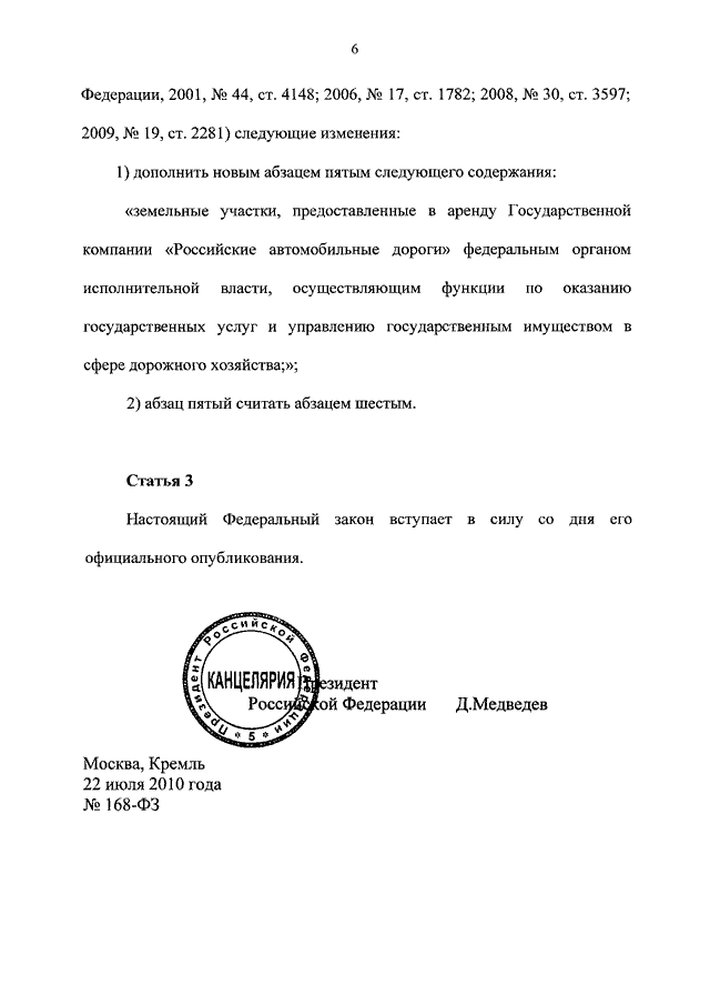 ФЕДЕРАЛЬНЫЙ ЗАКОН от 22.07.2010 N 168-ФЗ