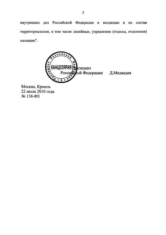 ФЕДЕРАЛЬНЫЙ ЗАКОН от 22.07.2010 N 158-ФЗ