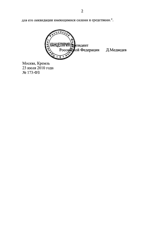ФЕДЕРАЛЬНЫЙ ЗАКОН от 23.07.2010 N 173-ФЗ