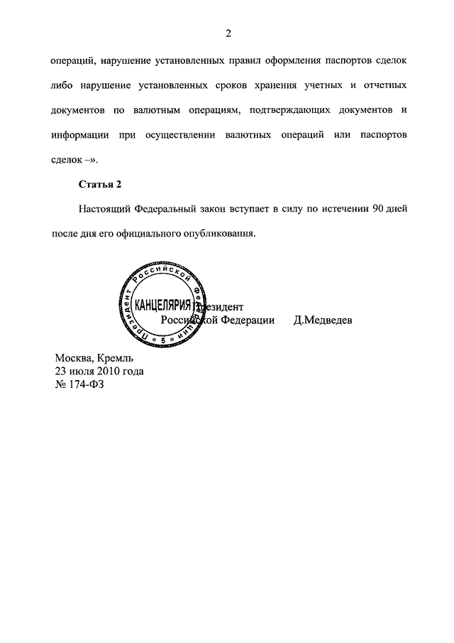 ФЕДЕРАЛЬНЫЙ ЗАКОН от 23.07.2010 N 174-ФЗ