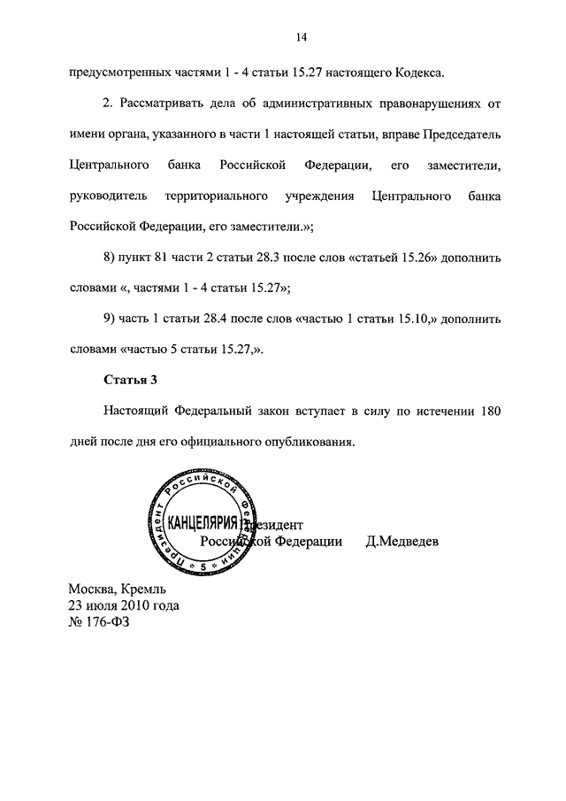 ФЕДЕРАЛЬНЫЙ ЗАКОН от 23.07.2010 N 176-ФЗ