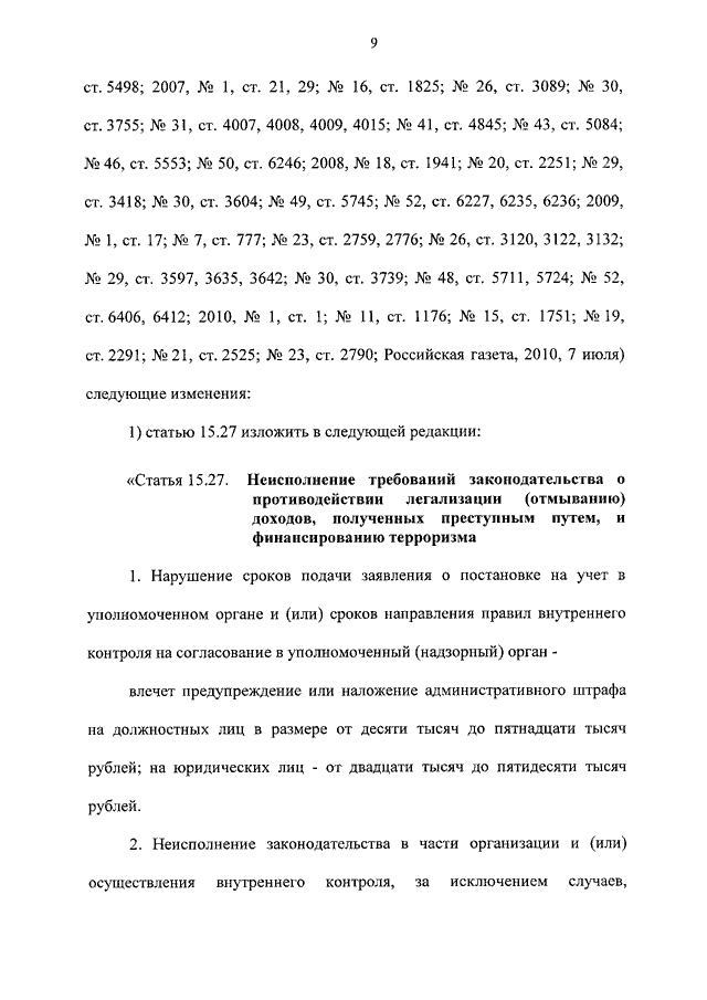 "О ВНЕСЕНИИ ИЗМЕНЕНИЙ В ФЕДЕРАЛЬНЫЙ ЗАКОН "О ПРОТИВОДЕЙСТВИИ ЛЕГАЛИЗАЦИИ (ОТМЫВАНИЮ) ДОХОДОВ, ПОЛУЧЕННЫХ ПРЕСТУПНЫМ ПУТЕМ, И ФИНАНСИРОВАНИЮ ТЕРРОРИЗМА" И КОДЕКС РОССИЙСКОЙ ФЕДЕРАЦИИ ОБ АДМИНИСТРАТИВНЫХ ПРАВОНАРУШЕНИЯХ"