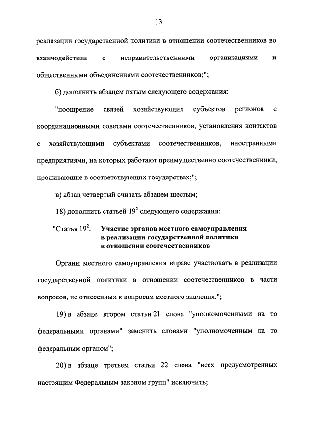 "О ВНЕСЕНИИ ИЗМЕНЕНИЙ В ФЕДЕРАЛЬНЫЙ ЗАКОН "О ГОСУДАРСТВЕННОЙ ПОЛИТИКЕ РОССИЙСКОЙ ФЕДЕРАЦИИ В ОТНОШЕНИИ СООТЕЧЕСТВЕННИКОВ ЗА РУБЕЖОМ"